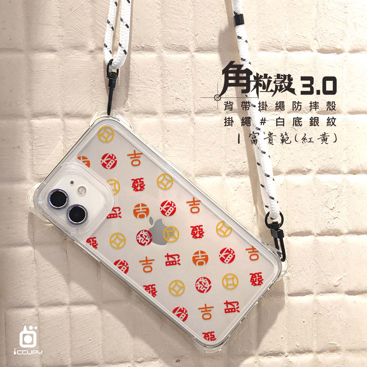 【富貴範-紅黃】iQ CASE角粒殼3.0背帶掛繩防摔殼 For iPhone 16 Plus-黑占iCCUPY