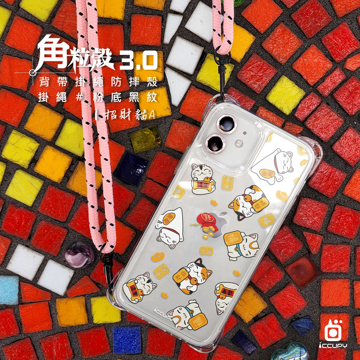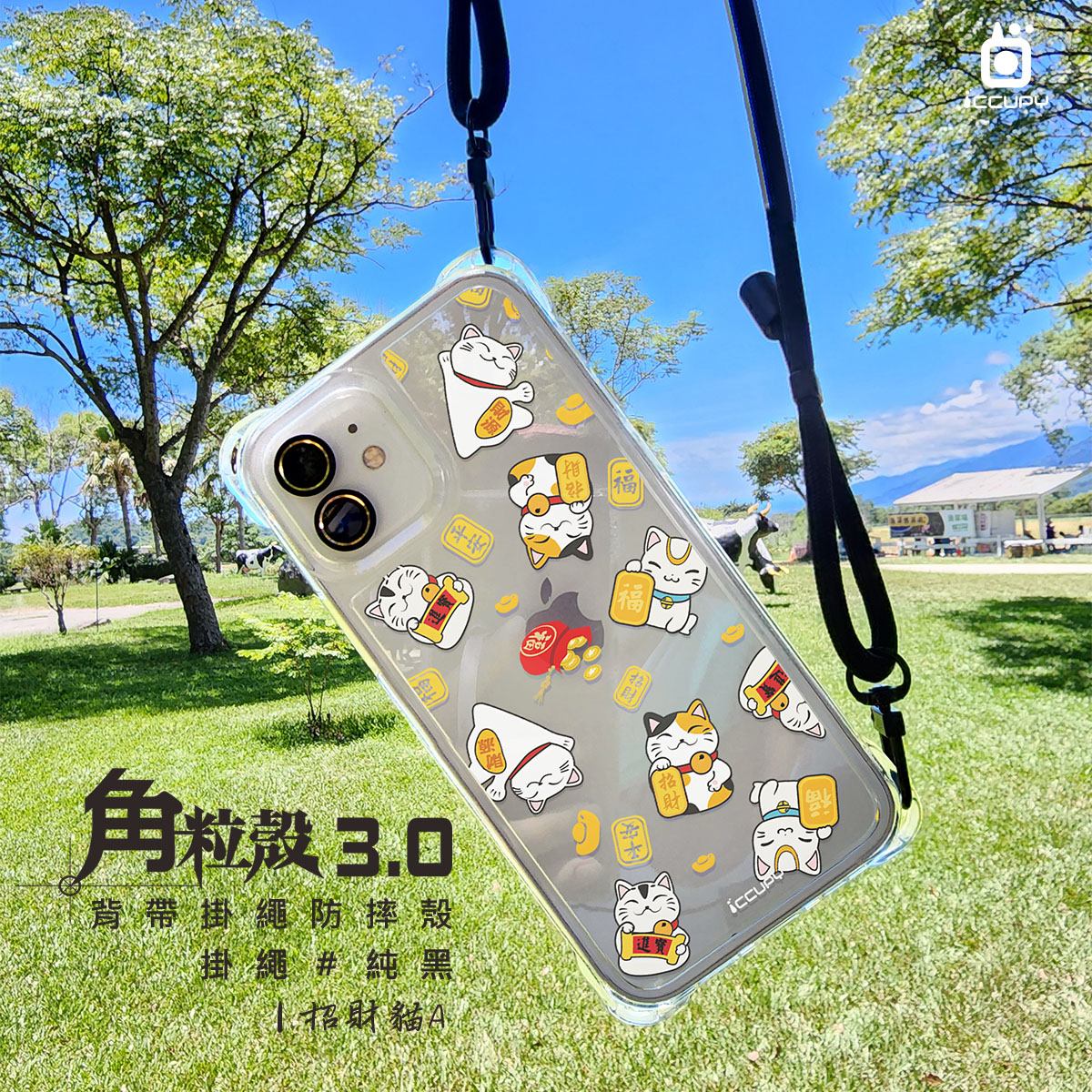 【招福貓A】iQ CASE角粒殼3.0背帶掛繩防摔殼 For iPhone 16 Plus-黑占iCCUPY