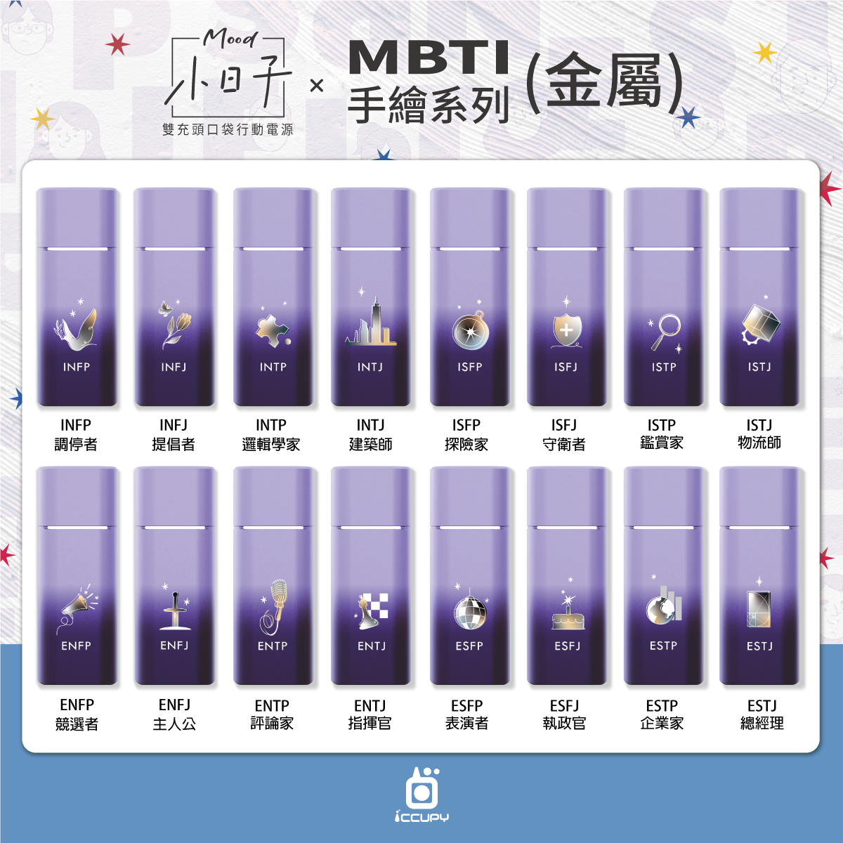 為了慶祝您成為黑粉一員,獻上"9折"優惠券(每位會員限用一次,單筆訂單不限金額皆可使用),祝您購物愉快。【MBTI|手繪系列ESFJ 執政官(金屬)】Mood小日子-雙充頭口袋行動電源|紫煙黑