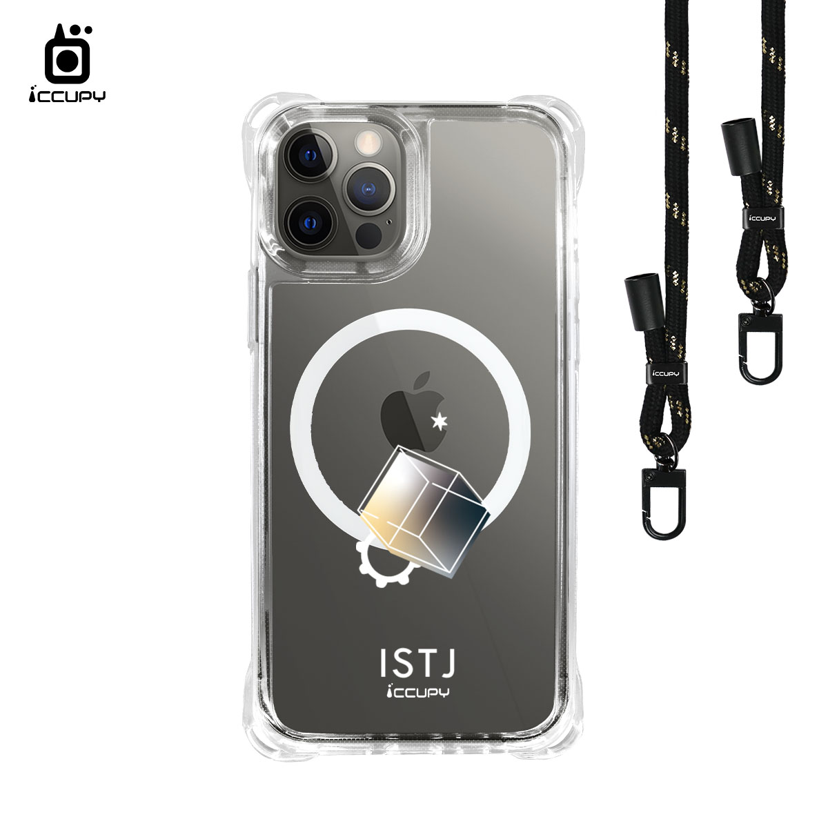 【MBTI|手繪系列-ISTJ 物流師(金屬)】iQ CASE角粒殼3.0背帶掛繩防摔殼 (支援MagSafe) For iPhone 12 Pro Max-黑占iCCUPY