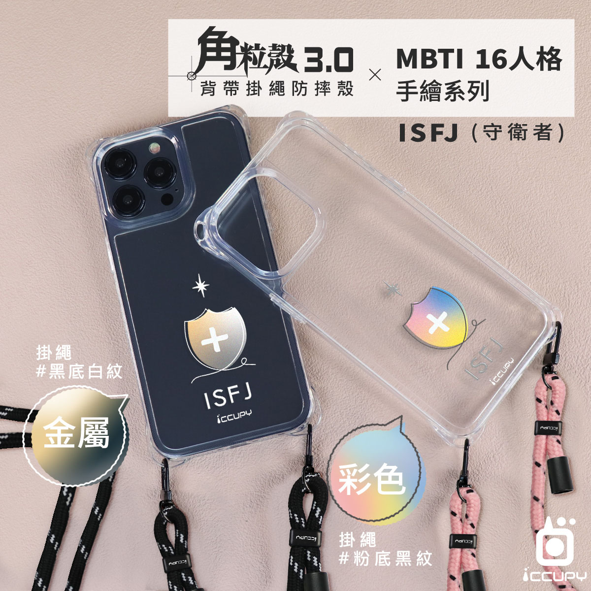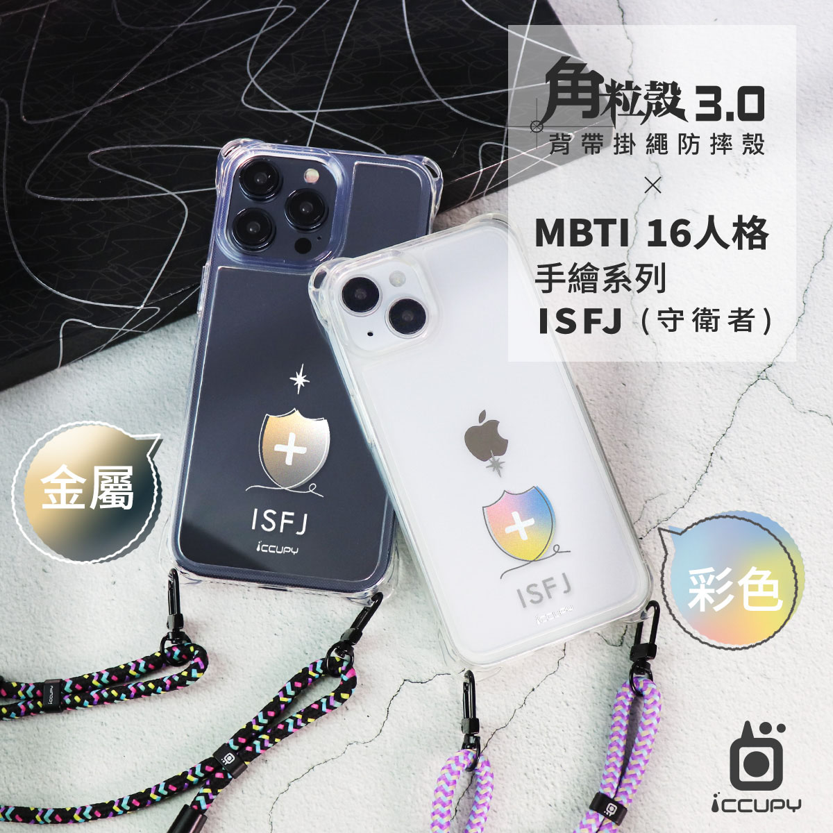 【MBTI|手繪系列-ISFJ 守衛者(金屬)】iQ CASE角粒殼3.0背帶掛繩防摔殼 (支援MagSafe) For iPhone 14 Plus-黑占iCCUPY