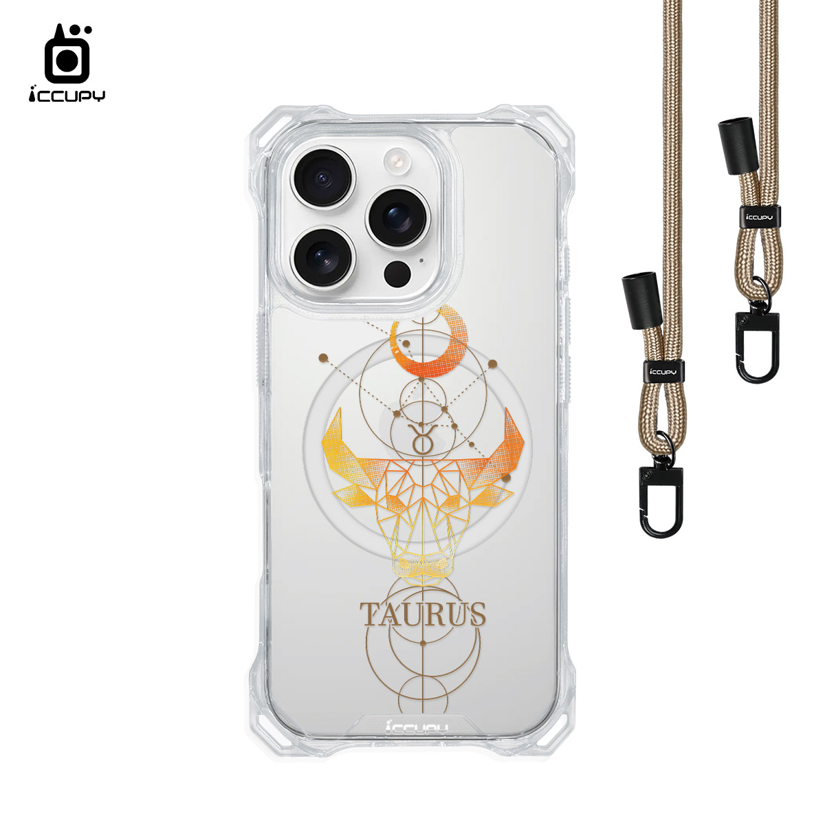 【占星-金牛座】iQ CASE角粒殼3.0背帶掛繩防摔殼 (支援MagSafe) For iPhone 16 Pro-黑占iCCUPY