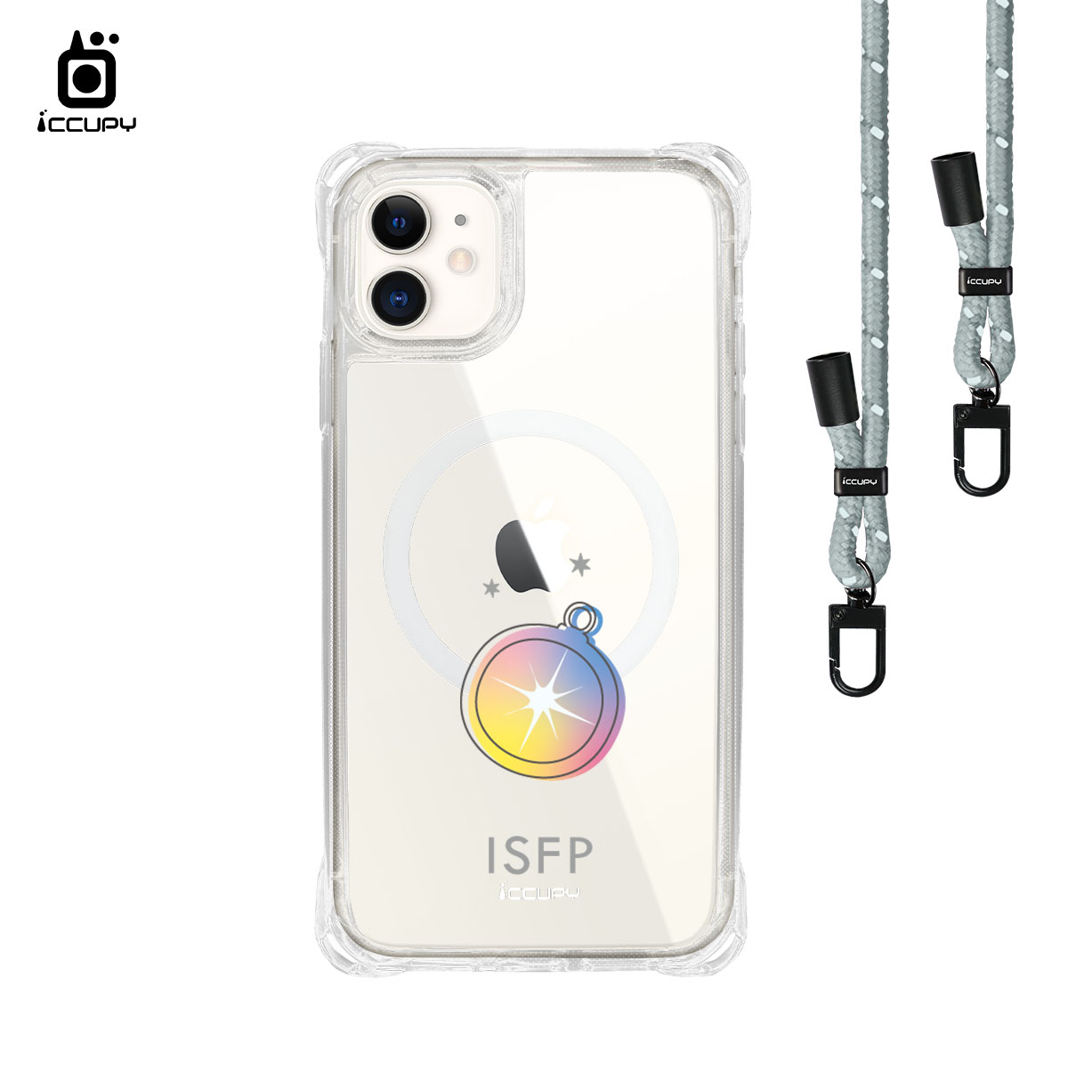 【MBTI|手繪系列-ISFP 探險家(彩色)】iQ CASE角粒殼3.0背帶掛繩防摔殼 (支援MagSafe) For iPhone 11 Pro Max-黑占iCCUPY