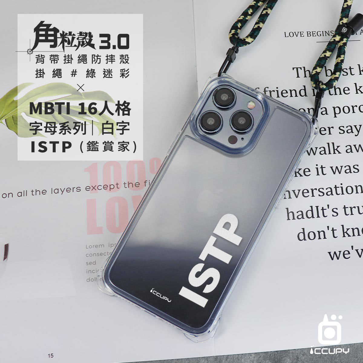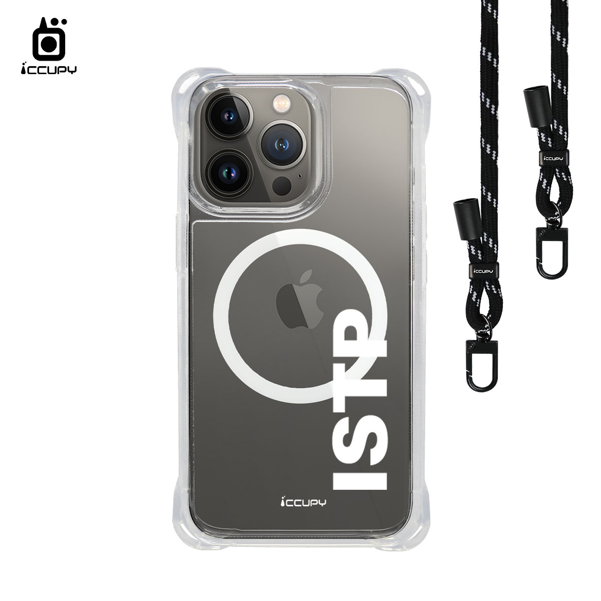 【MBTI|字母系列-ISTP 鑑賞家(白色)】iQ CASE角粒殼3.0背帶掛繩防摔殼 (支援MagSafe) For iPhone 13 Pro-黑占iCCUPY