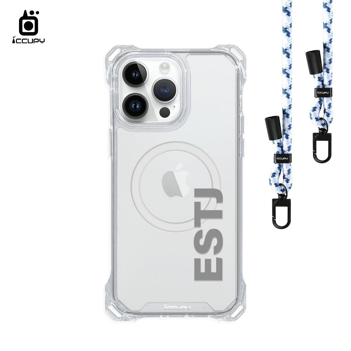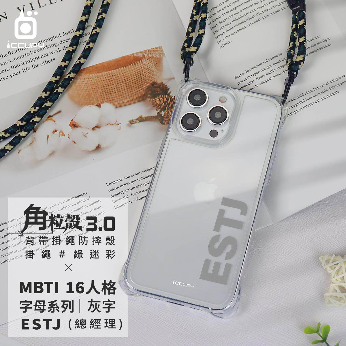 【MBTI|字母系列-ESTJ 總經理(灰色)】iQ CASE角粒殼3.0背帶掛繩防摔殼 (支援MagSafe) For iPhone 14 Pro Max-黑占iCCUPY