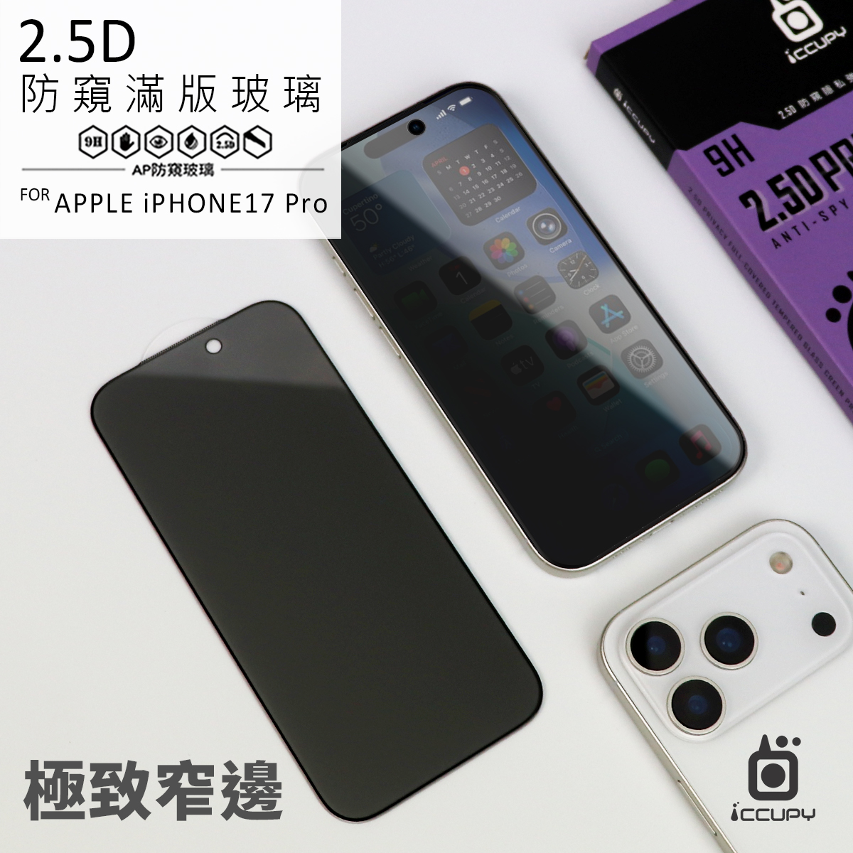 亮面防窺玻璃(隱私PRIVACY) FOR Apple iPhone 17 Pro 6.3(黑)