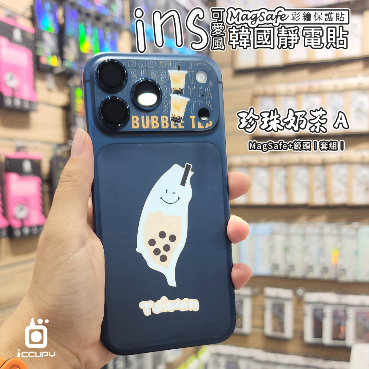 【珍珠奶茶】★套組★ MagSafe彩繪保護貼+彩繪鏡頭底座貼For iPhone 17 Pro