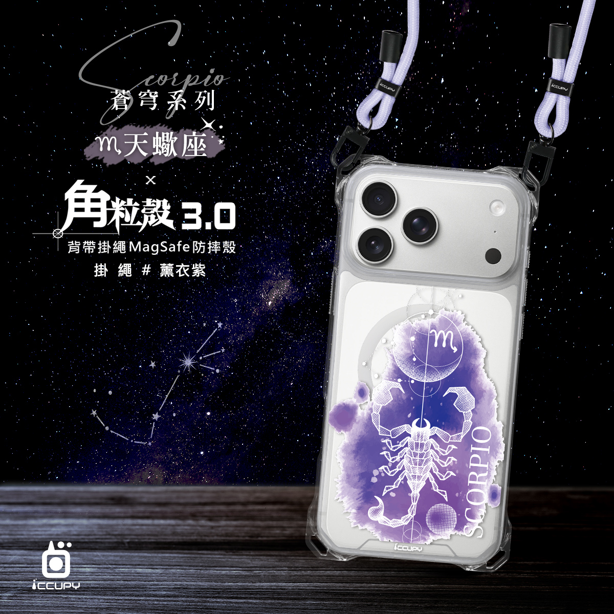 【蒼穹-天蠍座】iQ CASE角粒殼3.0背帶掛繩防摔殼 (支援MagSafe) For iPhone 17 Pro Max -黑占iCCUPY