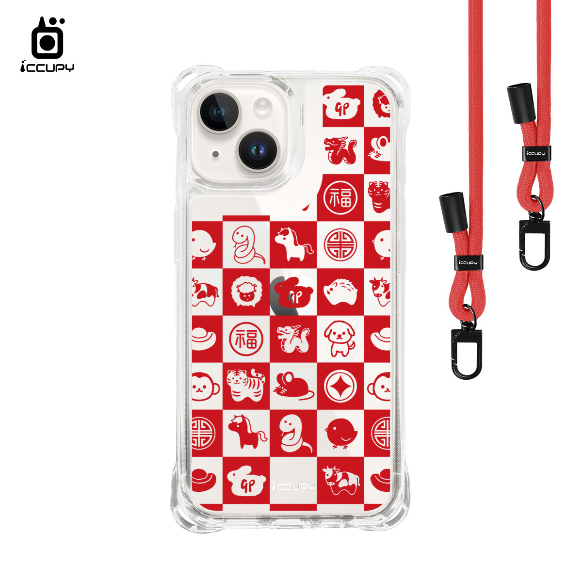 【十二生肖】iQ CASE角粒殼3.0背帶掛繩防摔殼 (支援MagSafe )For iPhone 14 -黑占iCCUPY