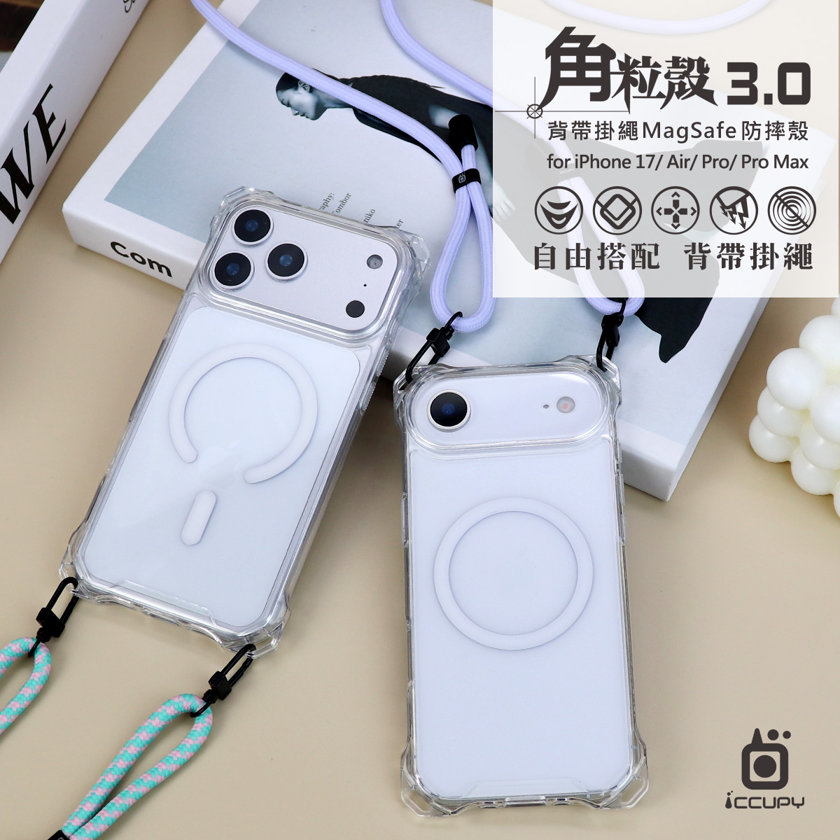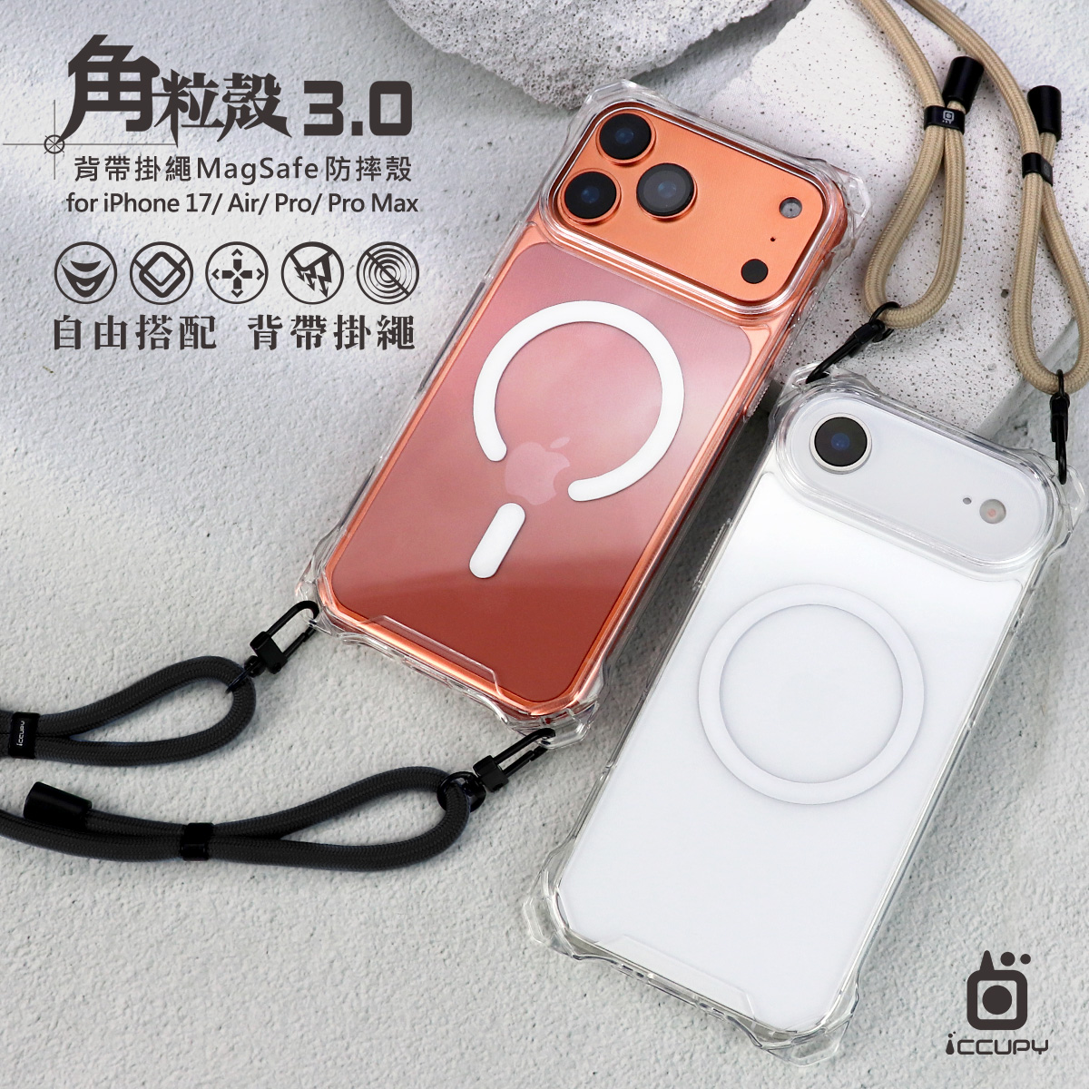 【淨恆HERMAN|山海與鶴】iQ CASE角粒殼3.0背帶掛繩防摔殼 (支援MagSafe ) For iPhone 17-黑占iCCUPY