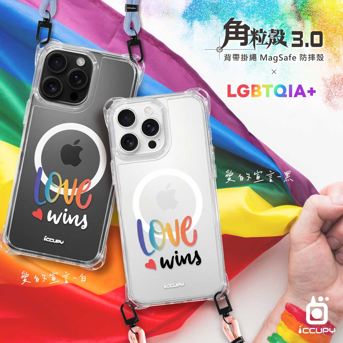 【LGBTQIA+🌈|RAINBOW】iQ CASE角粒殼3.0背帶掛繩防摔殼 (支援MagSafe) For iPhone 17 -黑占iCCUPY