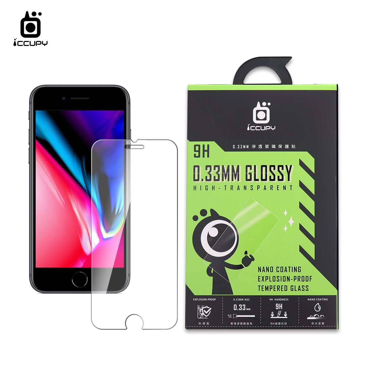 淨透玻璃(原機質感GLOSSY) FOR Apple iPhone 8 Plus (正面)