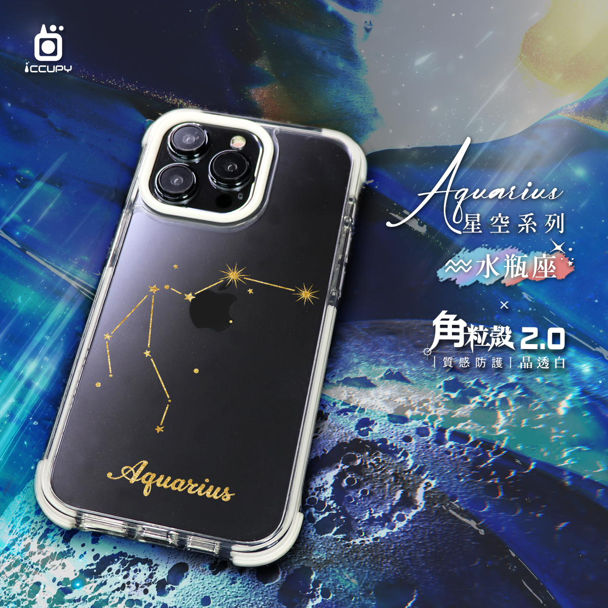 【星空-水瓶座】iQ CASE角粒殼2.0 (晶透黑) 質感防護 For iPhone 11 Pro-黑占iCCUPY