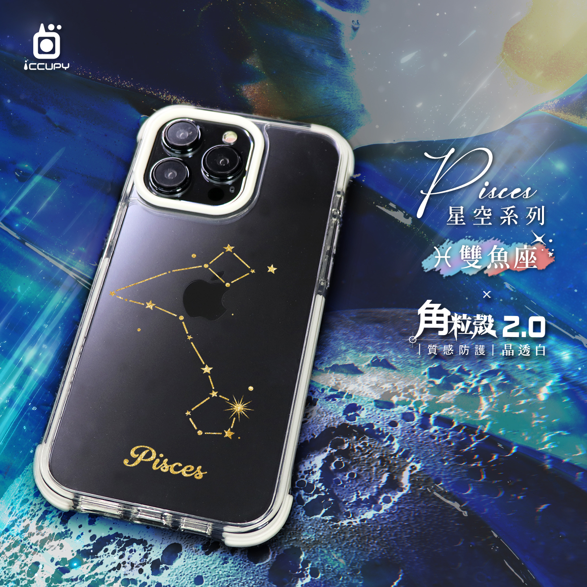 【星空-雙魚座】iQ CASE角粒殼2.0 (晶透黑) 質感防護 For iPhone 13 Pro-黑占iCCUPY