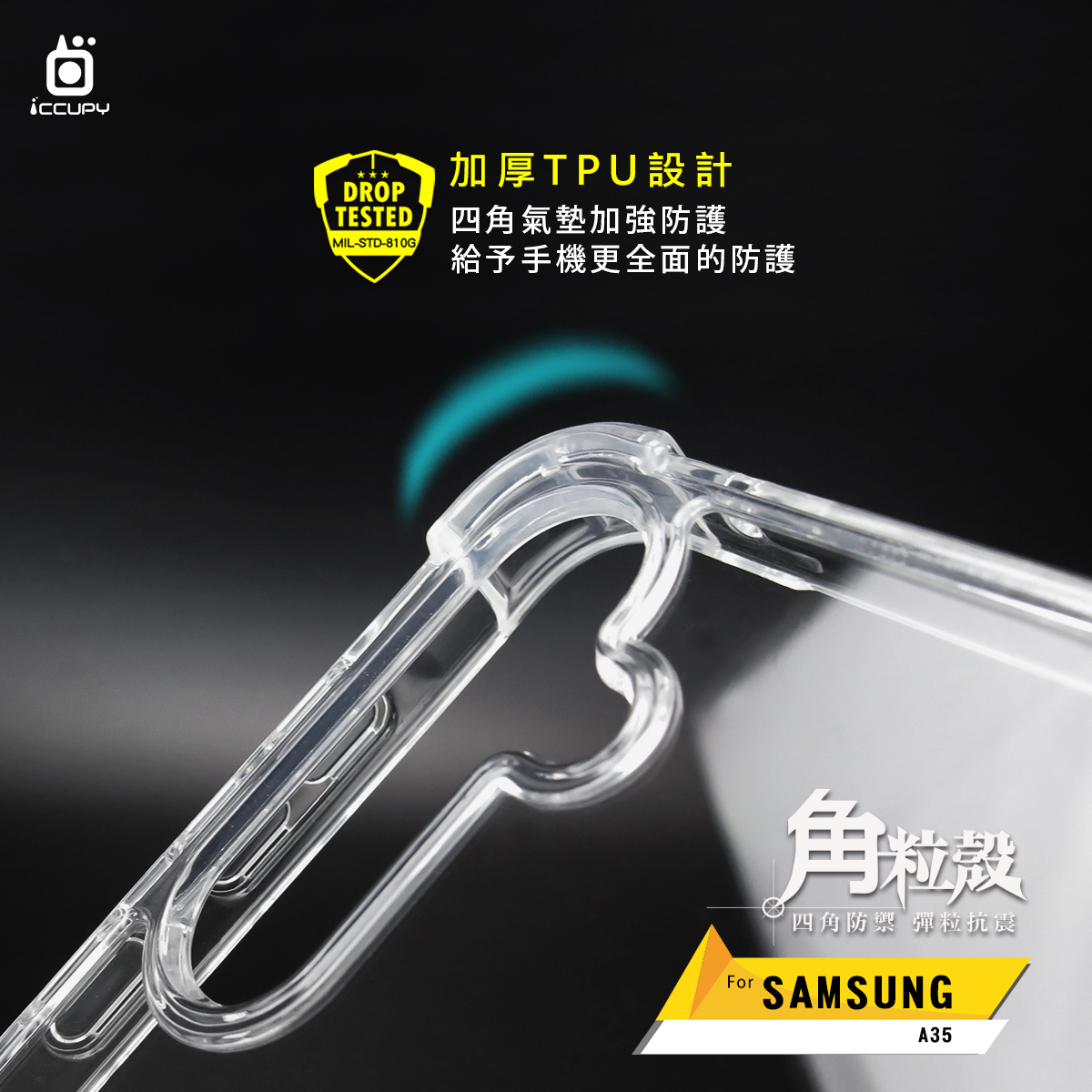 【怪獸字母Q】IQ CASE 角粒殼 For SAMSUNG A35-黑占iCCUPY
